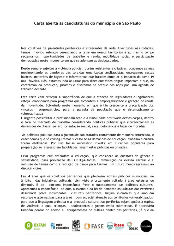 Carta aberta às candidaturas do município de São Paulo – Vesão final