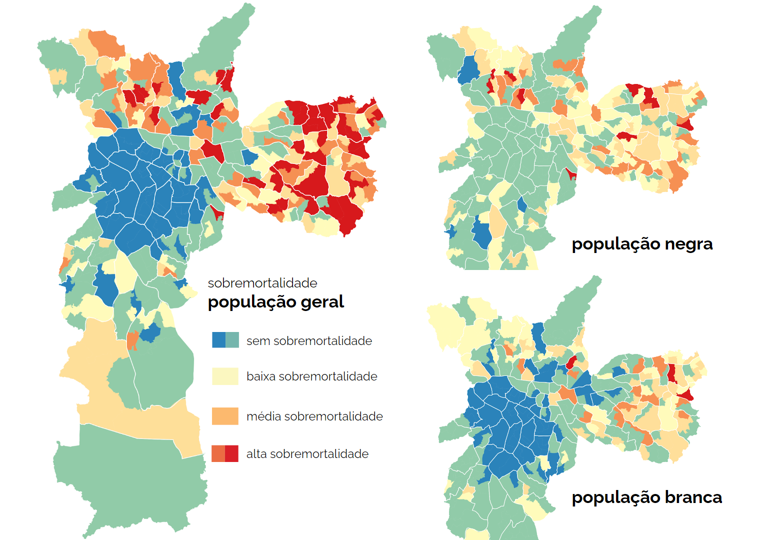A população negra registra, já desde os primeiros meses da pandemia, as maiores taxas de mortalidade, configurando o grupo demográfico mais impactado pelos óbitos da Covid-19 na cidade de S. Paulo. Conter a transmissão e reduzir as mortes implica uma ação estratégica focada nos grupos mais afetados pela pandemia. Neste sentido, o planejamento da vacinação deveria tomar como prioridade os territórios onde há sobremortalidade da população preta e parda, assim como as áreas que anotam alta concentração de óbitos pela pandemia.