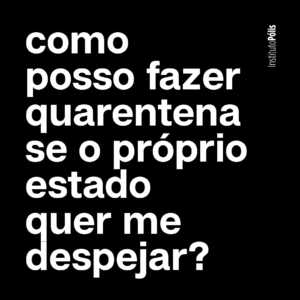Segundo o mapeamento do Observatório de Remoções, só na Região Metropolitana de São Paulo mais de dez mil famílias foram removidas de suas casas no último ano e mais de duzentas mil estão ameaçadas de remoção. Por conta disso, o Instituto de Arquitetos do Brasil, o Instituto Brasileiro de Direito Urbanístico e a Federação Nacional de Arquitetos Urbanistas estão solicitando ao sistema de justiça a suspensão imediata do cumprimento de despejos, reintegrações de posse e remoções de qualquer natureza. Em março, a Procuradoria Federal dos Direitos do Cidadão (PFDC), que integra o Ministério Público Federal, também solicitou ao Conselho Nacional de Justiça (CNJ) a suspensão dos despejos em nível nacional. Aqui em São Paulo, o Ministério Público pediu à Justiça a suspensão das ordens de reintegração de posse. Essa é uma questão humanitária, que visa evitar a disseminação do coronavírus, e a preservação de inúmeras famílias e da saúde pública do país.