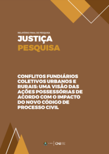 Este projeto é uma parceria entre Insper e o Instituto Pólis e foi contratada via Edital nº 2/2019 pelo Conselho Nacional de Justiça (CNJ). Trata-se de uma pesquisa da “Série Justiça Pesquisa”, concebida pelo Departamento de Pesquisas Judiciárias do Conselho Nacional de Justiça (DPJ/CNJ). Seu principal objetivo é apresentar, pela primeira vez, um diagnóstico abrangente sobre as ações possessórias coletivas de bens imóveis em diferentes instâncias do Judiciário brasileiro. Este amplo diagnóstico buscou responder a seguinte pergunta: houve mudanças significativas nas ações possessórias coletivas de bens imóveis com as alterações normativas do Código de Processo Civil de 2015?