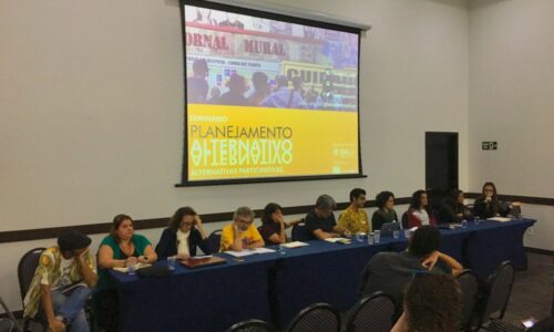 O seminário nacional Planejamento Alternativo: Alternativas Participativas, Inclusivas e Insurgentes foi uma iniciativa do Instituo Pólis com a pareceria de fomento do CAU/SP. O objetivo do evento foi compartilhar, disseminar e aprofundar o debate teórico e prático que possibilitasse a reflexão sobre a atuação de arquitetos e arquitetas urbanistas em novas formas de planejamento territorial. A reflexão proposta partiu das práticas de profissionais, estudantes, técnicos, movimentos sociais e outros atores locais de quatro cidades brasileiras com experiências alternativas de projeto e planejamento de territórios em disputa: Belo Horizonte, Fortaleza, Rio e São Paulo.